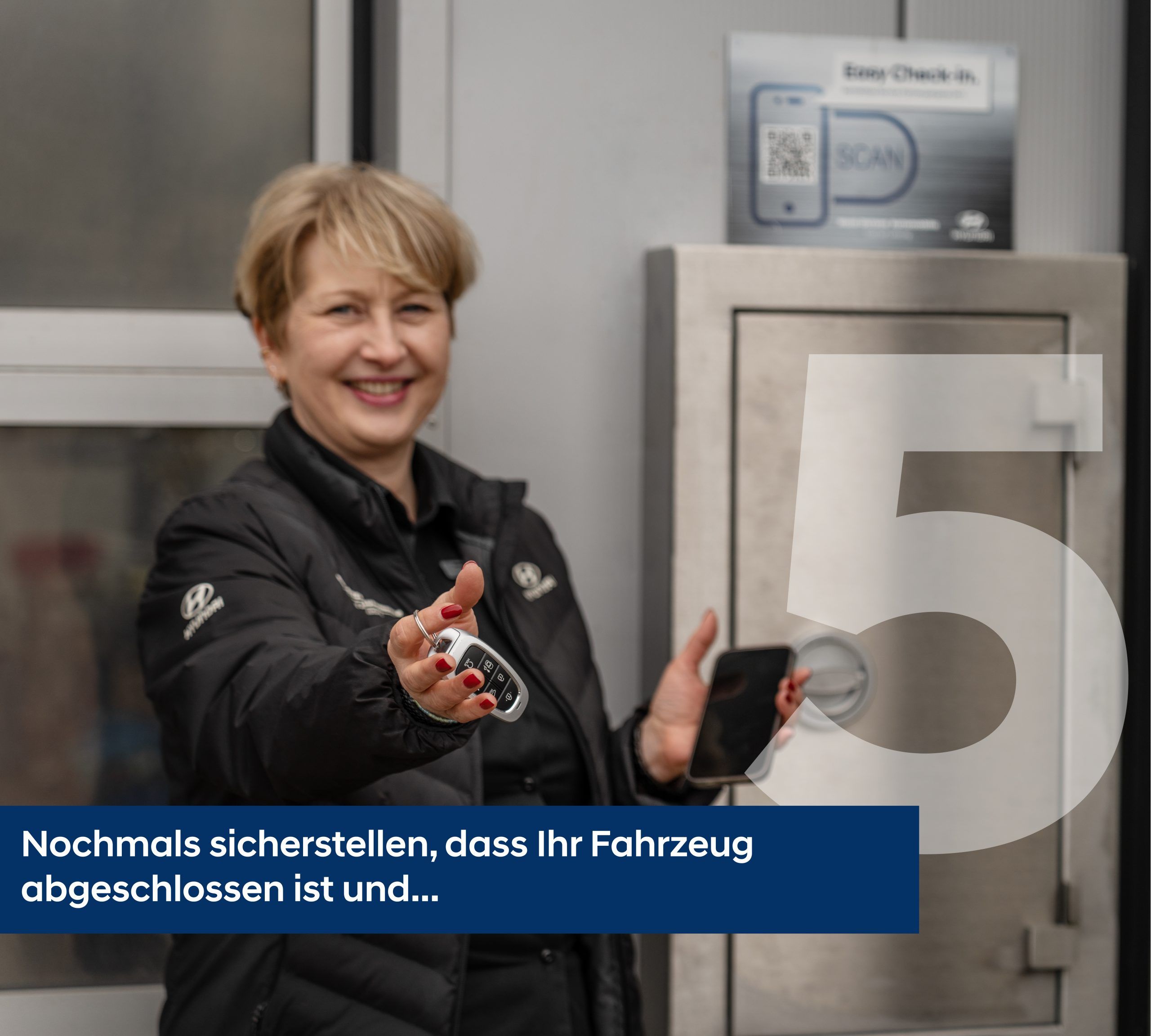 • Parken Sie Ihr Fahrzeug auf unserem Parkplatz und verschließen es.