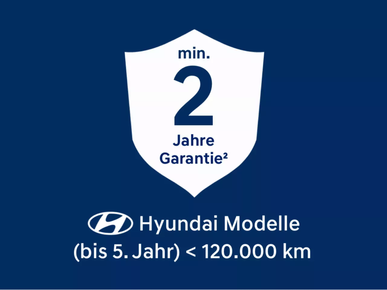 Auf Hyundai Promise Modelle, d.h. für unsere neueren Gebrauchten (bis 5 Jahr und bis zu 120.000 km) erhalten Sie mindestens 2 Jahre Garantie¹.