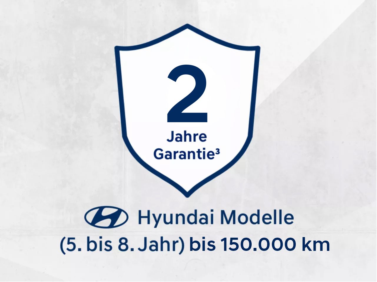 ² Gilt nur für Geprüfte Gebrauchtwagen (Hyundai Modelle zwischen 5. und 8. Fahrzeugjahr nach Erstauslieferung oder Erstzulassung, je nachdem, was zuerst eintritt, und Fremdfabrikate mit einer Laufleistung bis zu 150.000 km).
